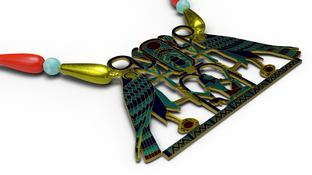 3D model of an Egyptian necklace with pendant.